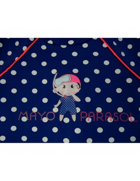 Votre petite fille sera la plus belle à la piscine ou à la plage dans cette combinaison marine et ses touches de fluo qui lui donnent un effet très sport chic! Nouveau petit personnage mayoparasol® aux couleurs très tendances thermocollé sur la combinaison anti UV. Finitions soignées.