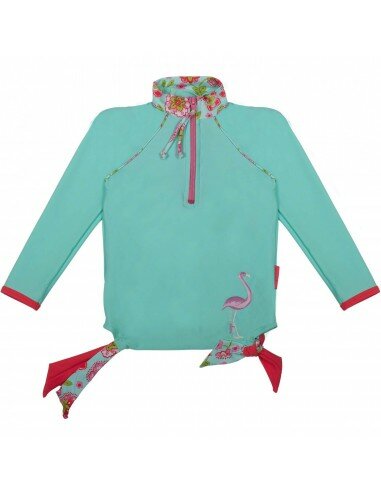 Enfin le nouveau T-shirt anti uv manches longues fille de cet été ! Bleu lagon, détails fleuris et rouge coquelicot. Un haut 100% girly pour être la plus jolie au soleil en balade comme à la plage ou à la piscine !